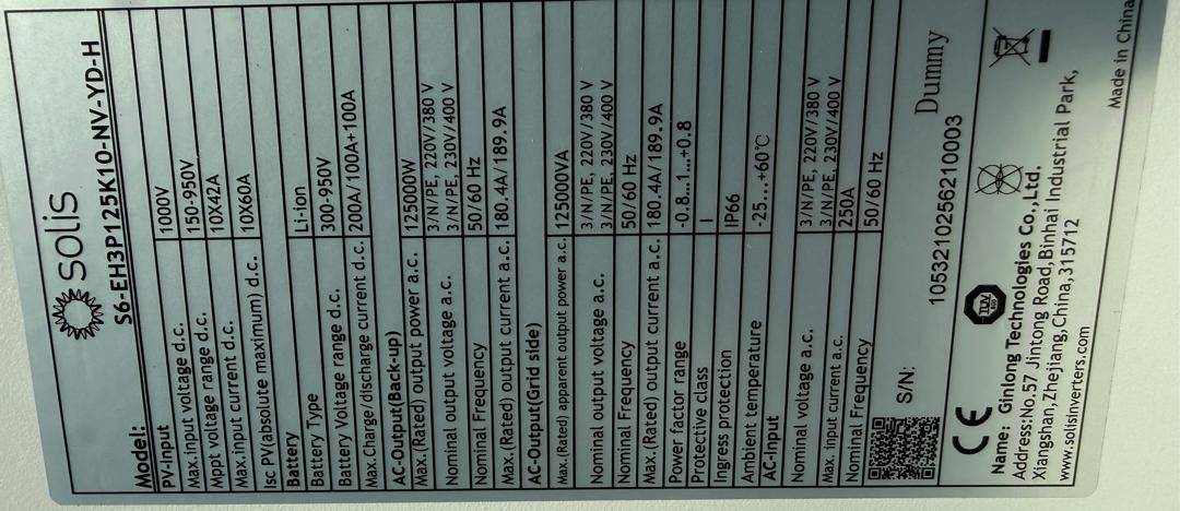 • Maximum in Parallel: 6 giving 125-1250KW power